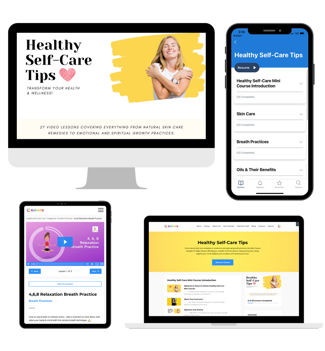 Healthy Self-Care Tips gives you a guided process with 27 video lessons, supporting worksheets and space for journaling so you can immediately start practicing and applying these new self-care habits.